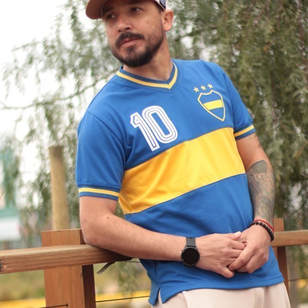 Identidad Inconfundible: Los hombros y mangas en un profundo azul rey contrastan a la perfección, haciendo una clara referencia a los colores que identifican.