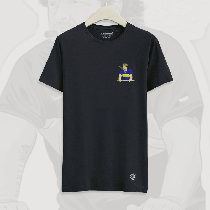 Esta elegante polera negra presenta un bordado de Diego Maradona, inspirado en una de sus fotos más icónicas. Con un diseño minimalista y único, es perfecta para los fanáticos del fútbol y los admiradores de la leyenda argentina. Hecha con materiales de alta calidad, esta prenda ofrece comodidad y estilo en todo momento. ¡Un imprescindible para tu colección!